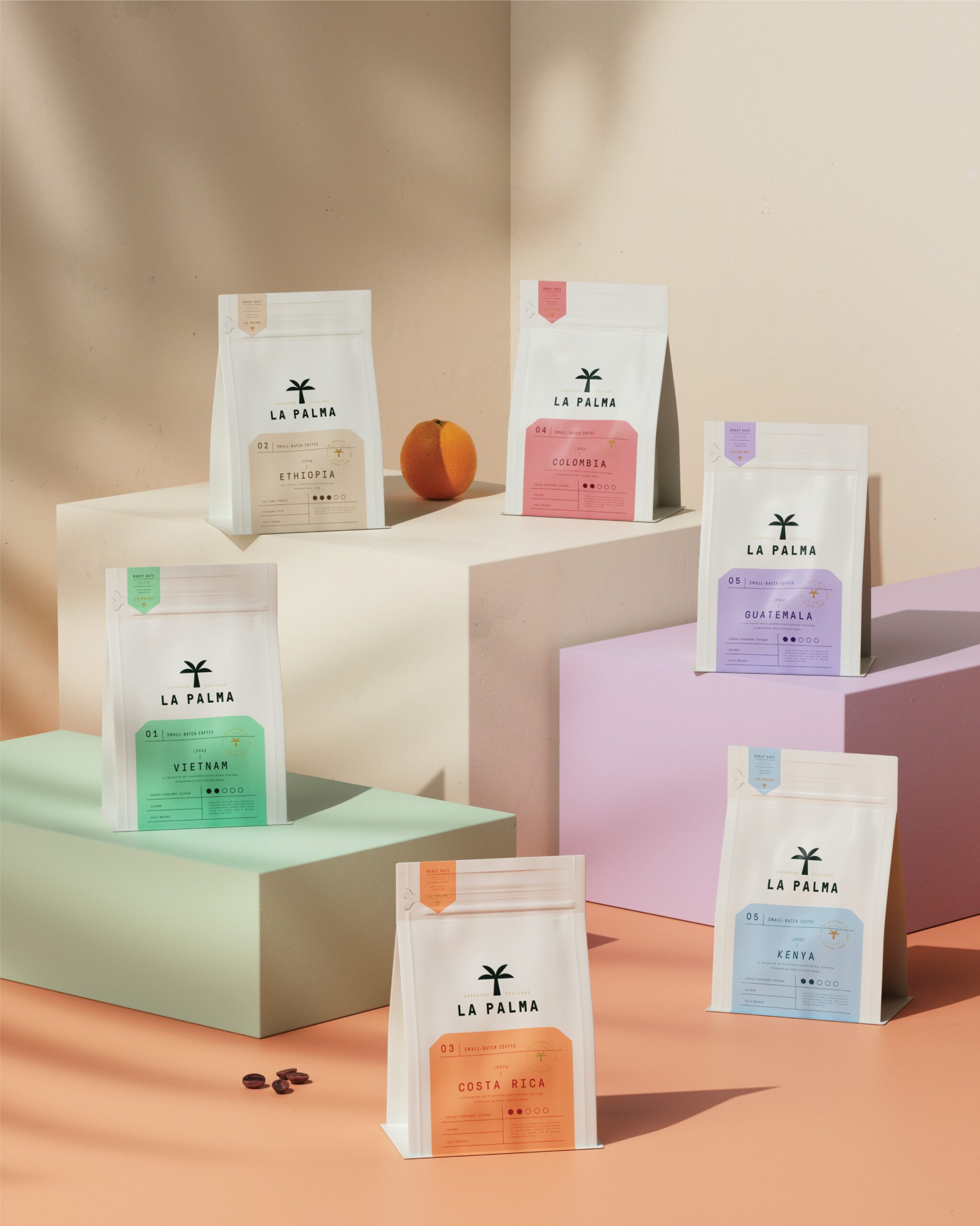 Packaging was designed to feel light, clean, and intuitive. Transparent materials and soft color blocks allow the coffee inside to remain visible, reinforcing honesty and freshness. Clear information hierarchy helps communicate origin, roast, and tasting notes with ease.