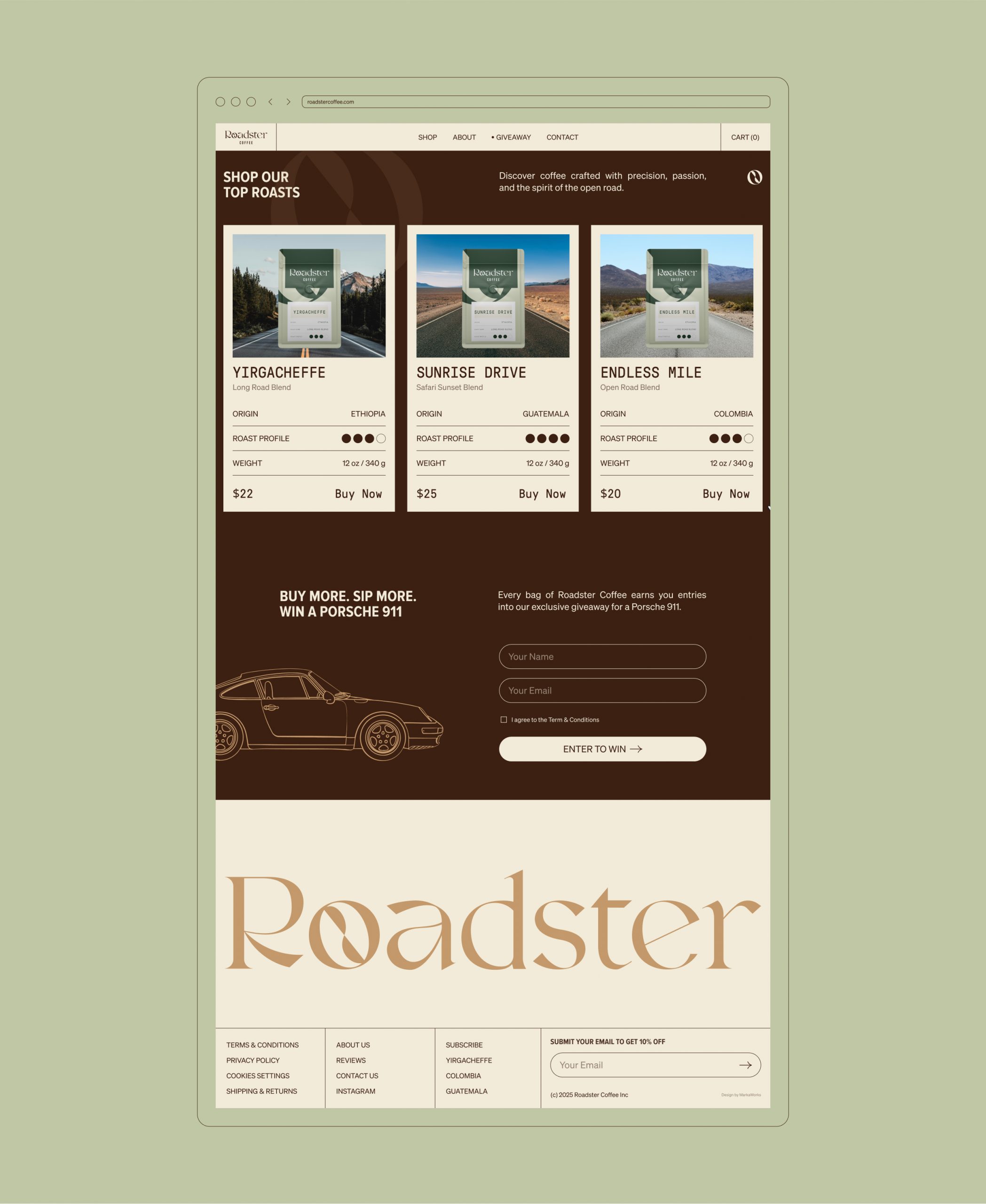The result is a cohesive, premium coffee brand that resonates with design-conscious consumers. Roadster Coffee bridges heritage and modernity, turning every cup into a continuation of a journey.