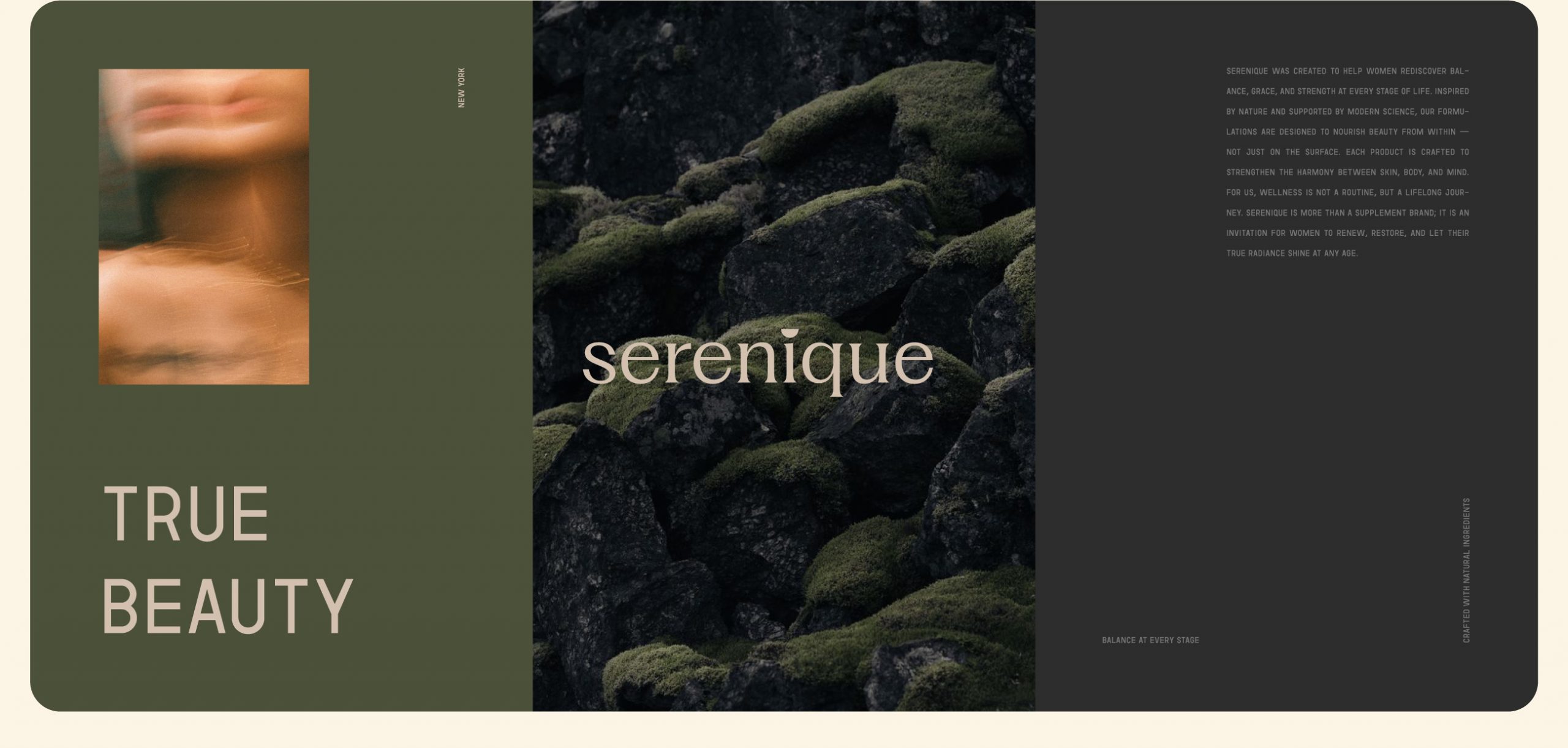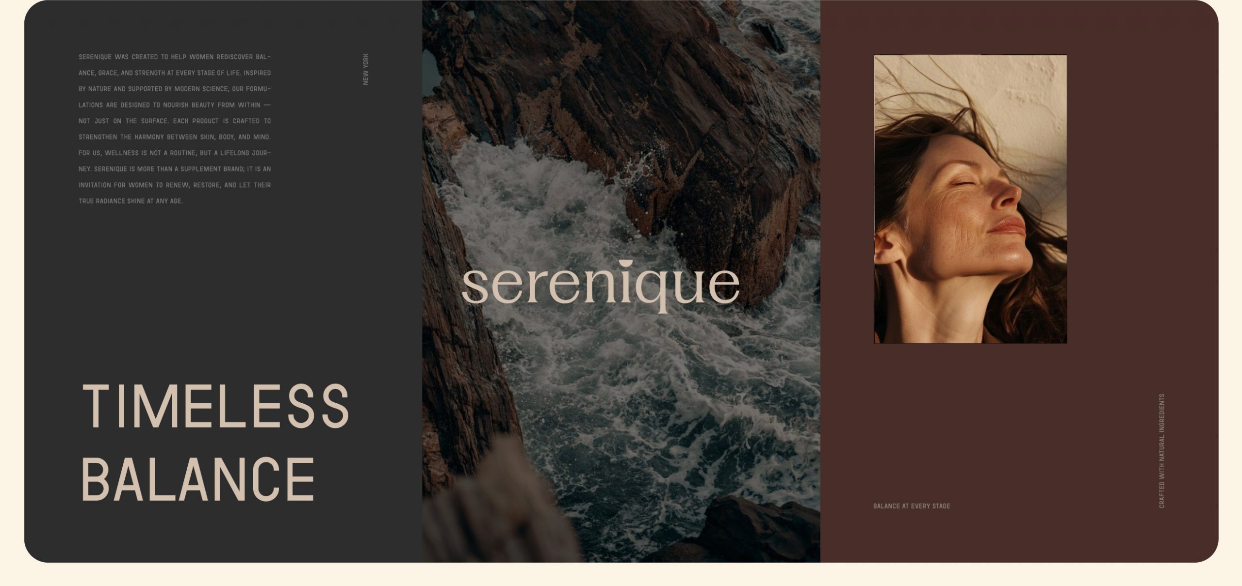 We shaped Serenique’s narrative to resonate with women at every stage of life. Through precise wording and emotional storytelling, the brand communicates its mission: to restore balance, empower beauty, and inspire confidence.